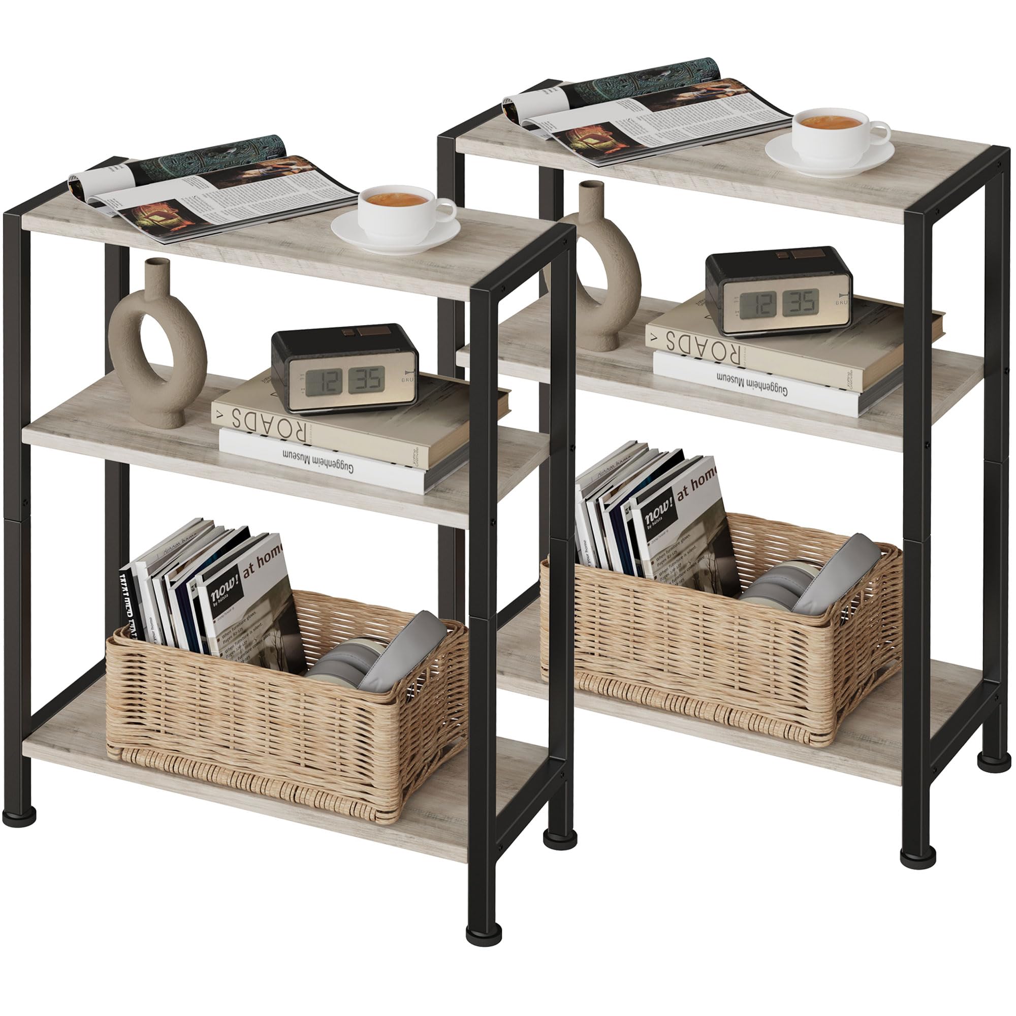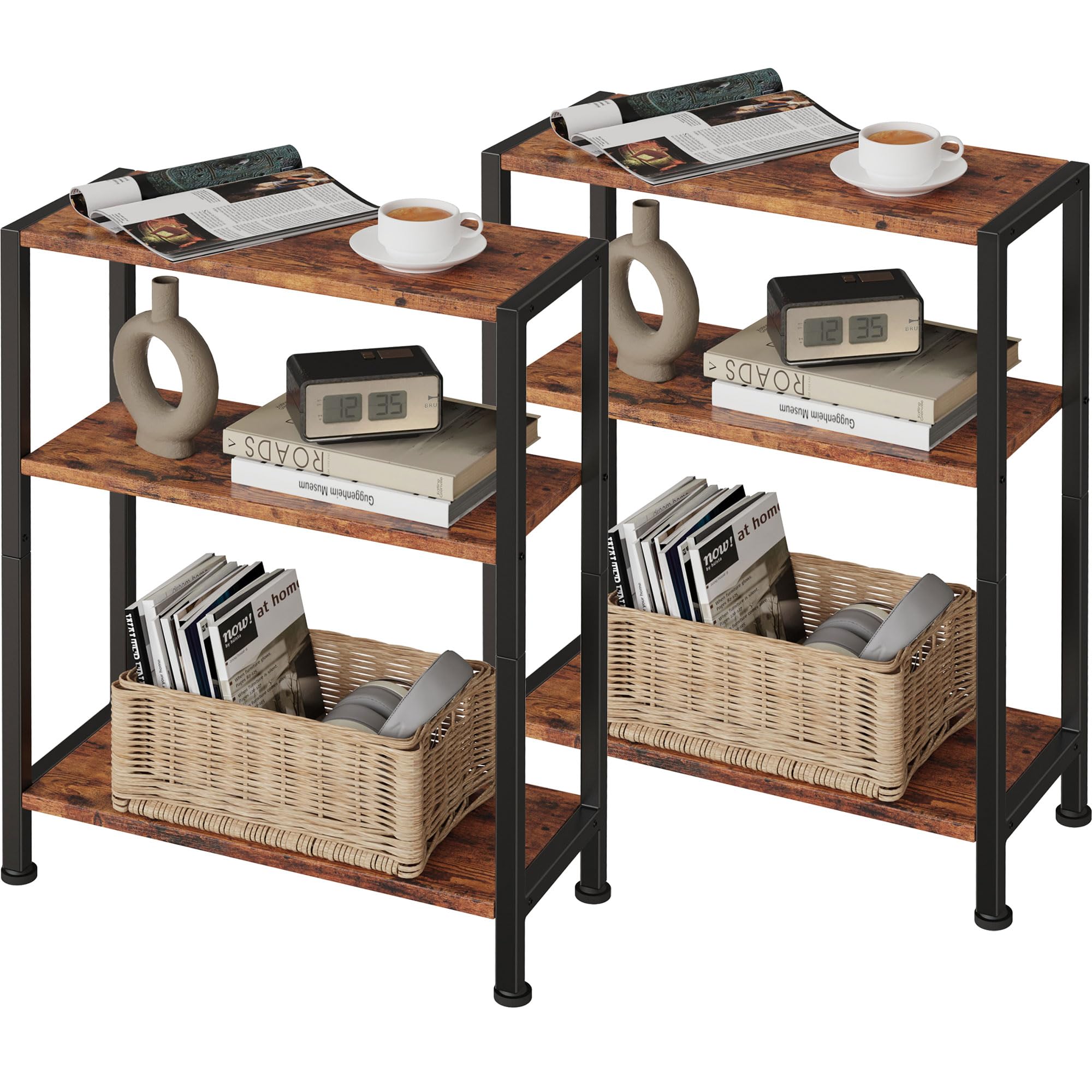 3-Tier Side Table, Small End Table, Sofa Side Table for Narrow Spaces, Slim End Table, Nightstand Table, for Living Room Bedroom Office, Rustic Brown