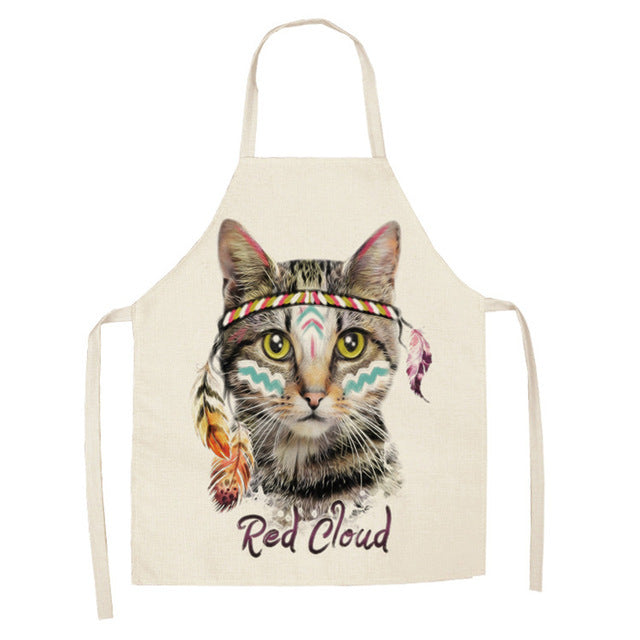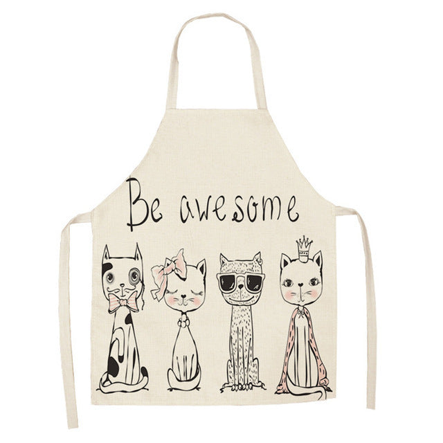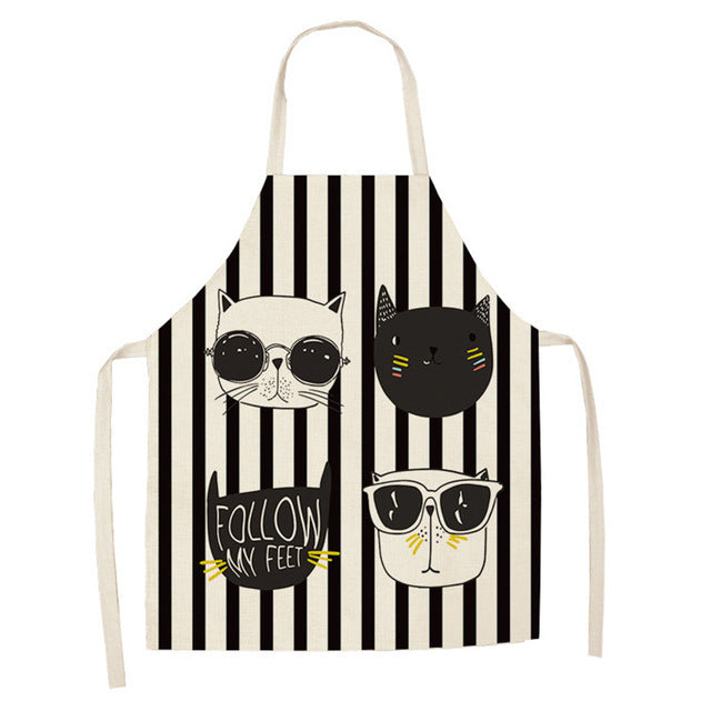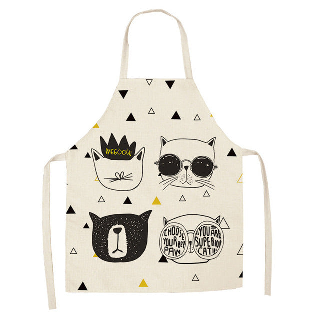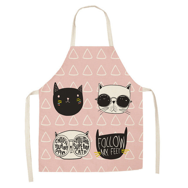 Cartoon Cat Couple Linen Sleeveless Apron Kitchen Furniture Cleaning Daily Sleeveless Coverall
