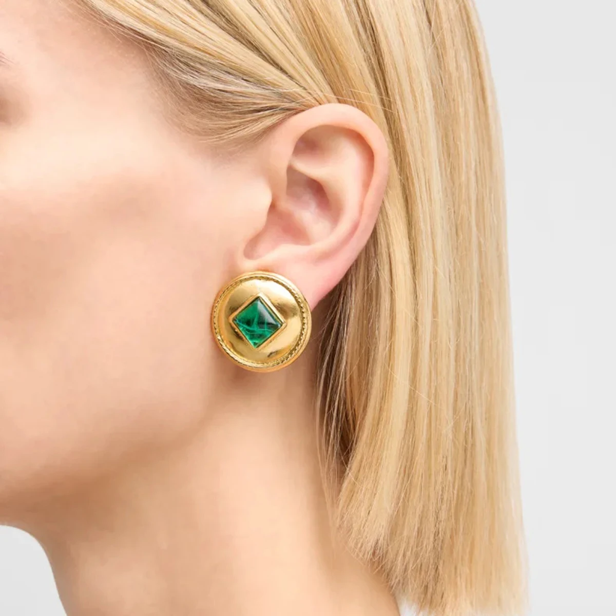 Brincos Criativos de Grão de Martelo em Aço Inoxidável Banhado a Ouro 18K com Inlay de Resina Verde para Mulheres, À Prova d'Água, Joias Atraentes