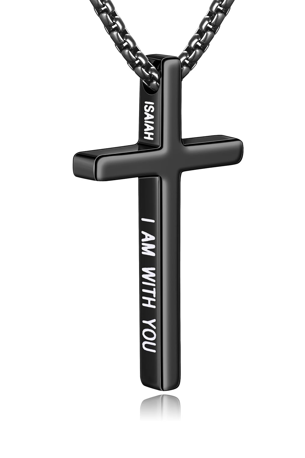 Fiusem Cross Necklace for Men, Inspirational Bible Verse Cross Chain for Men, Stainless Steel Box Necklace