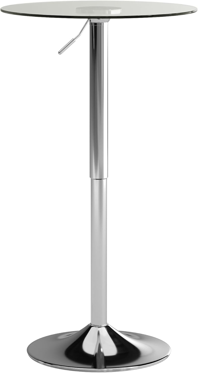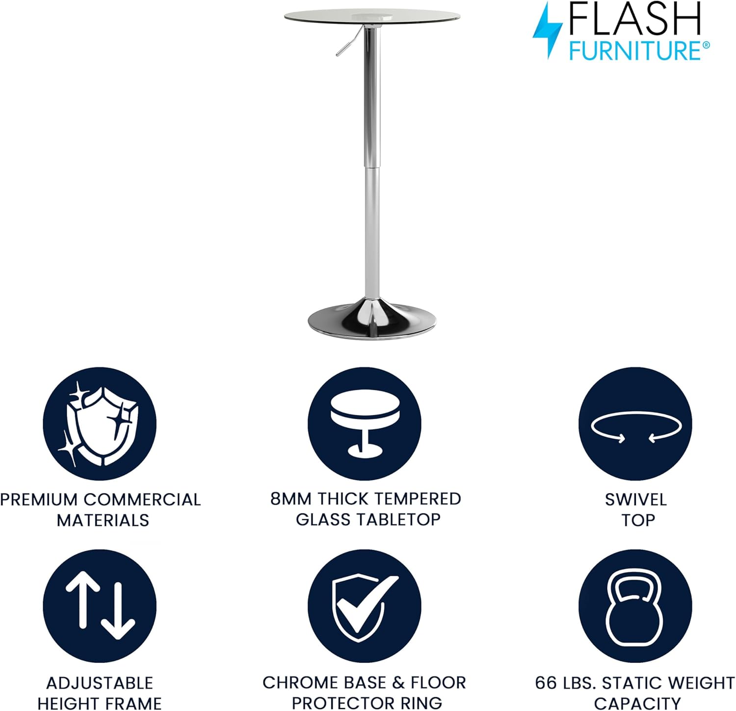 Flash Furniture Chad 23.5'' Round Glass Cocktail Table with Adjustable Height Frame, Bar Height Table for Commercial or Residential Use, Clear/Chrome