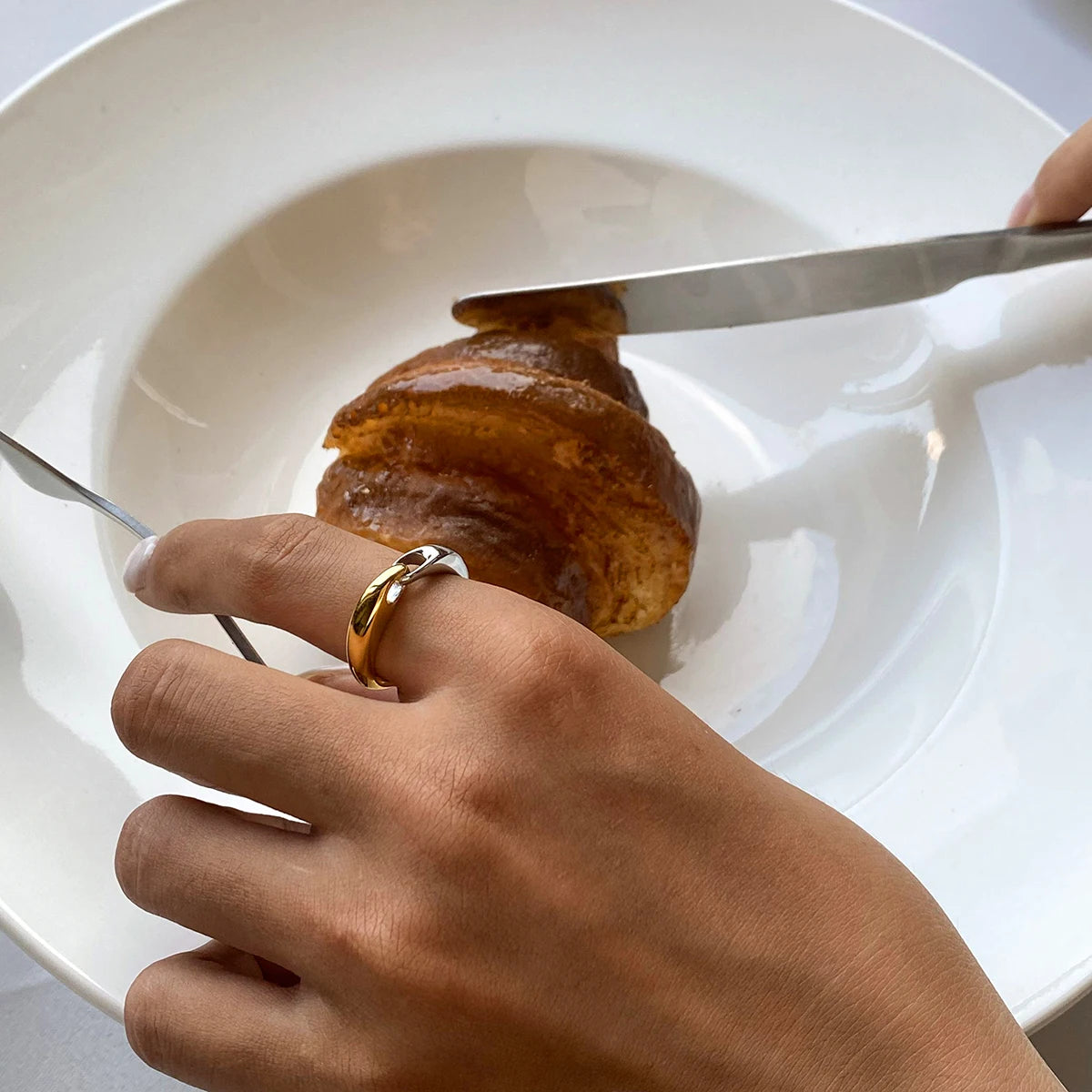 Anel Feminino Minimalista com Fivela de Corrente Bicolor em Ouro 18k e Prata, Atraente, Impermeável, em Aço Inoxidável, Charmoso