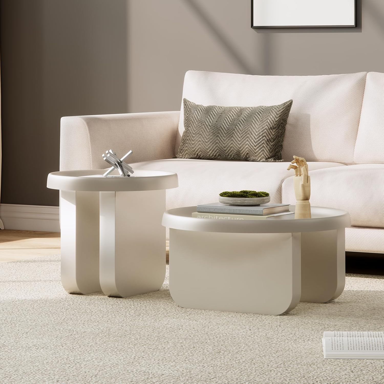 - Flexible arrangement, say goodbye to the drab: This coffee table and end table sets includes a round coffee table (29.1 x 16.5 ") and a modern side table (19.3 x 19.7 "), Use size and high and low staggered collocation nested design, effectively saving space.