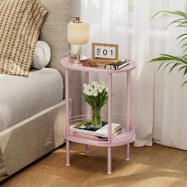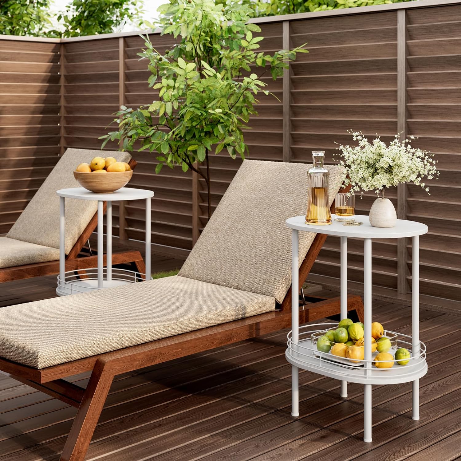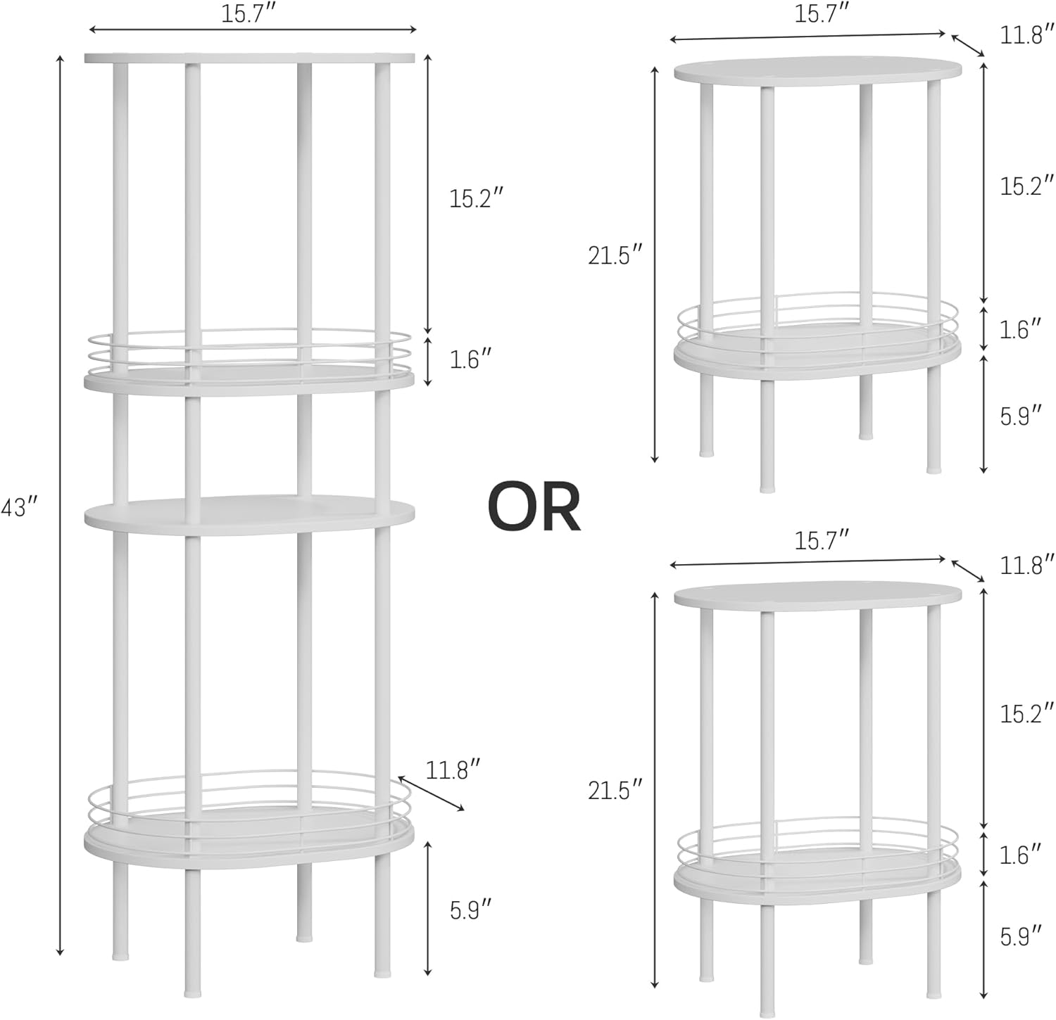 - [FOR SMALL SPACES] Standing at 11.8"D x 15.7"W x 21.5"H, this end table takes up little floor space while serving .This two-tier side tables with top/bottom shelf for extra storage has ample space for books, tablets, remote controls, snacks and drinks