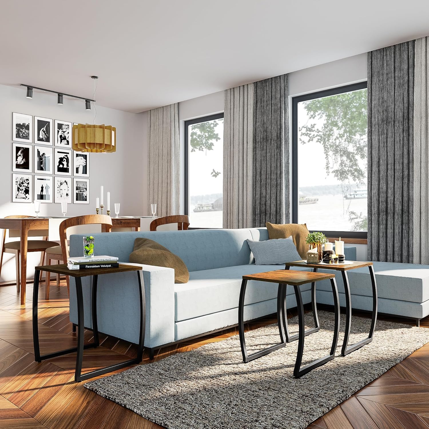 SRIWATANA Nesting Tables, Vintage Side End Tables Living Room, Coffee Snack Table Set of 3