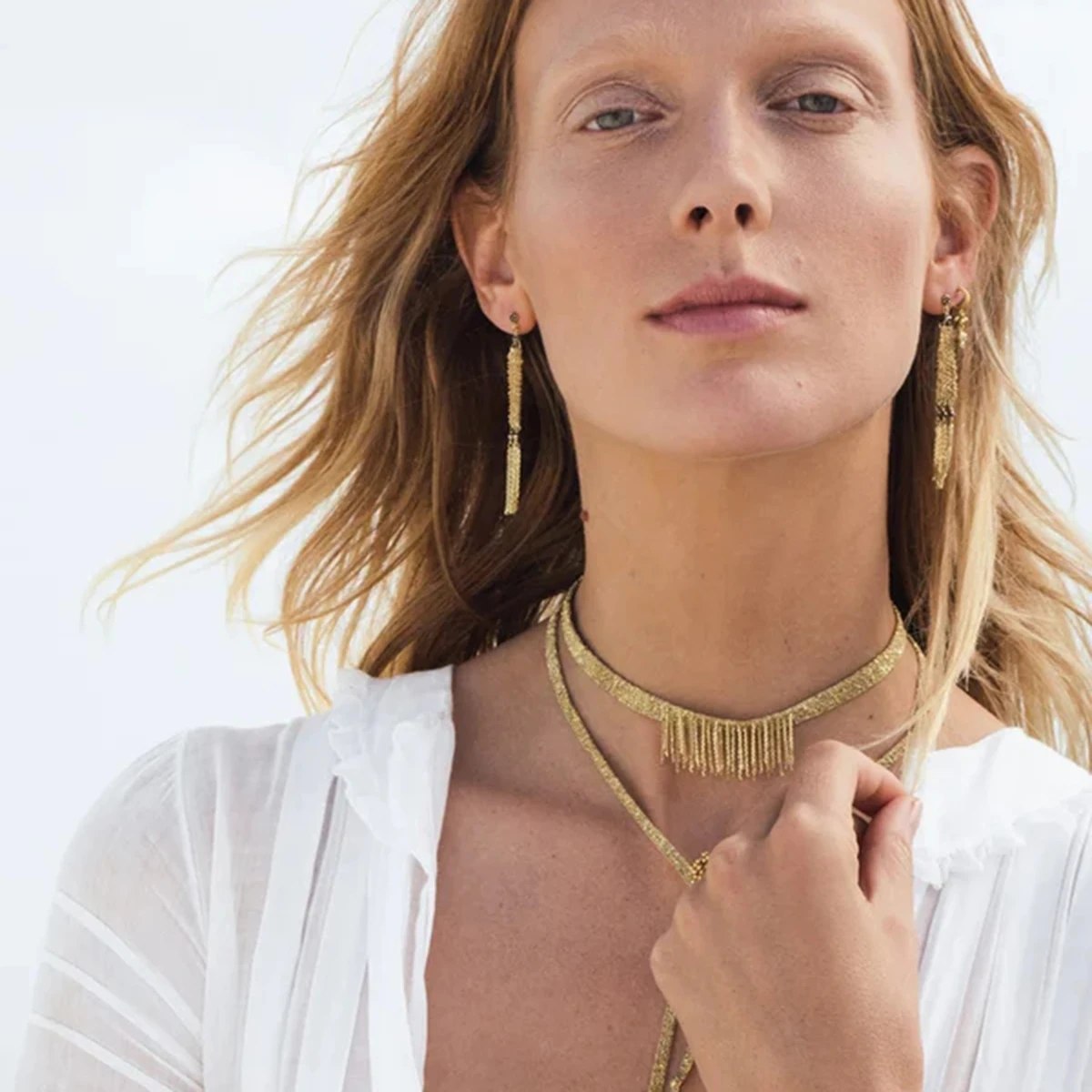 Tipo: Brincos/Colar com Franjas de Pedra Natural