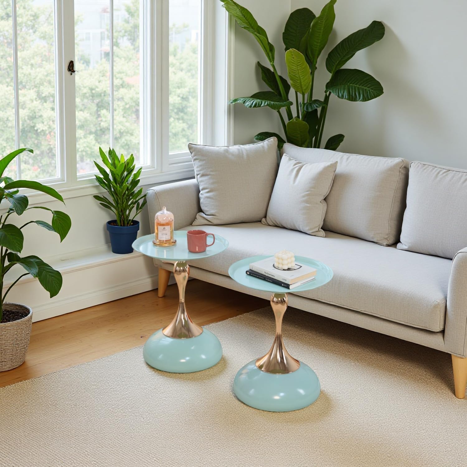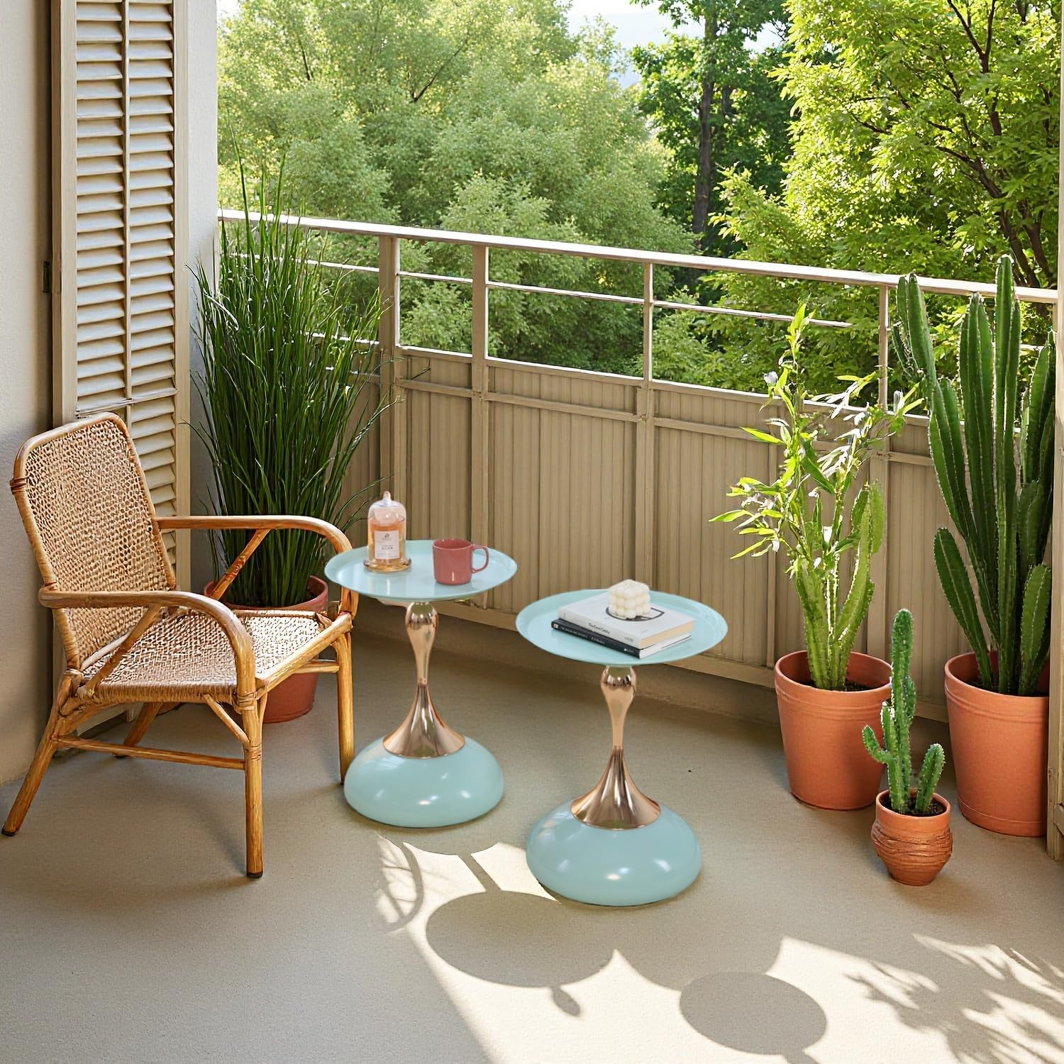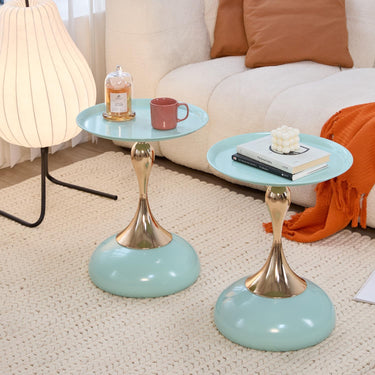 Stylish Hourglass Side Table - Contemporary Design for Living Rooms, Cafes, Dining Areas, Bedrooms, and Outdoor Spaces - Perfect Accent Piece for Any Decor (2, Light Green)