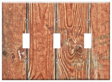 Placa de Interruptor Triplo - Fachada de Tábuas de Madeira Ripas de Parede de Madeira Fundo 2