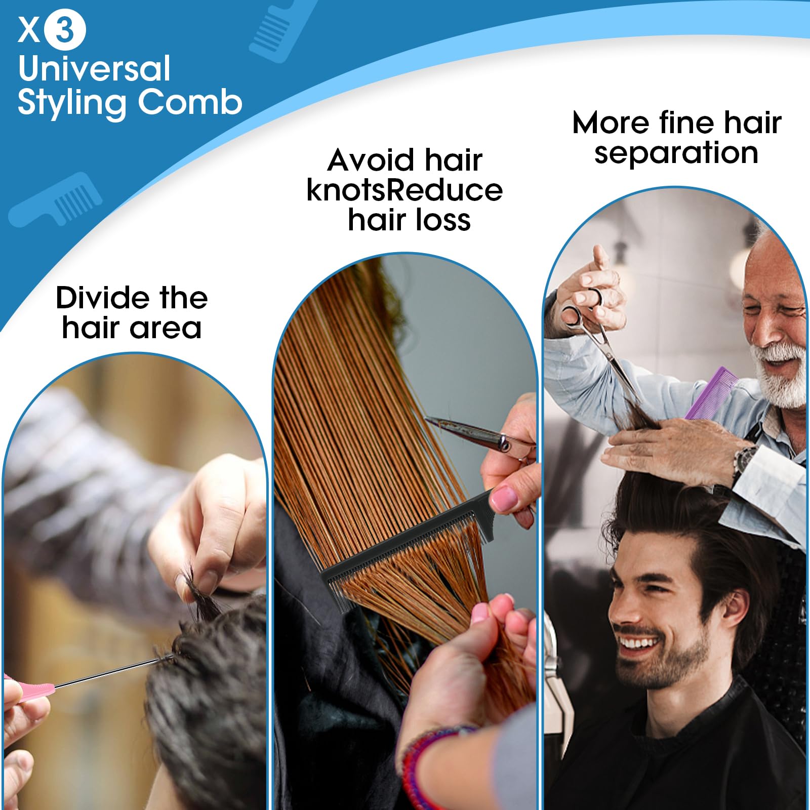 - Package: 3Pcs Rat Tail Combs Set,Enough for You to Apply in Daily Life and Meet Your Replacement Needs(Note:pointed part included, please keep away from kids)