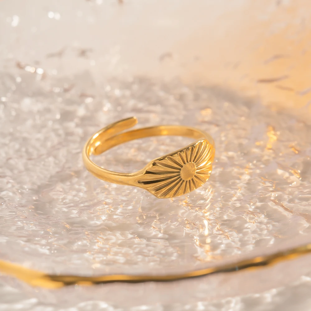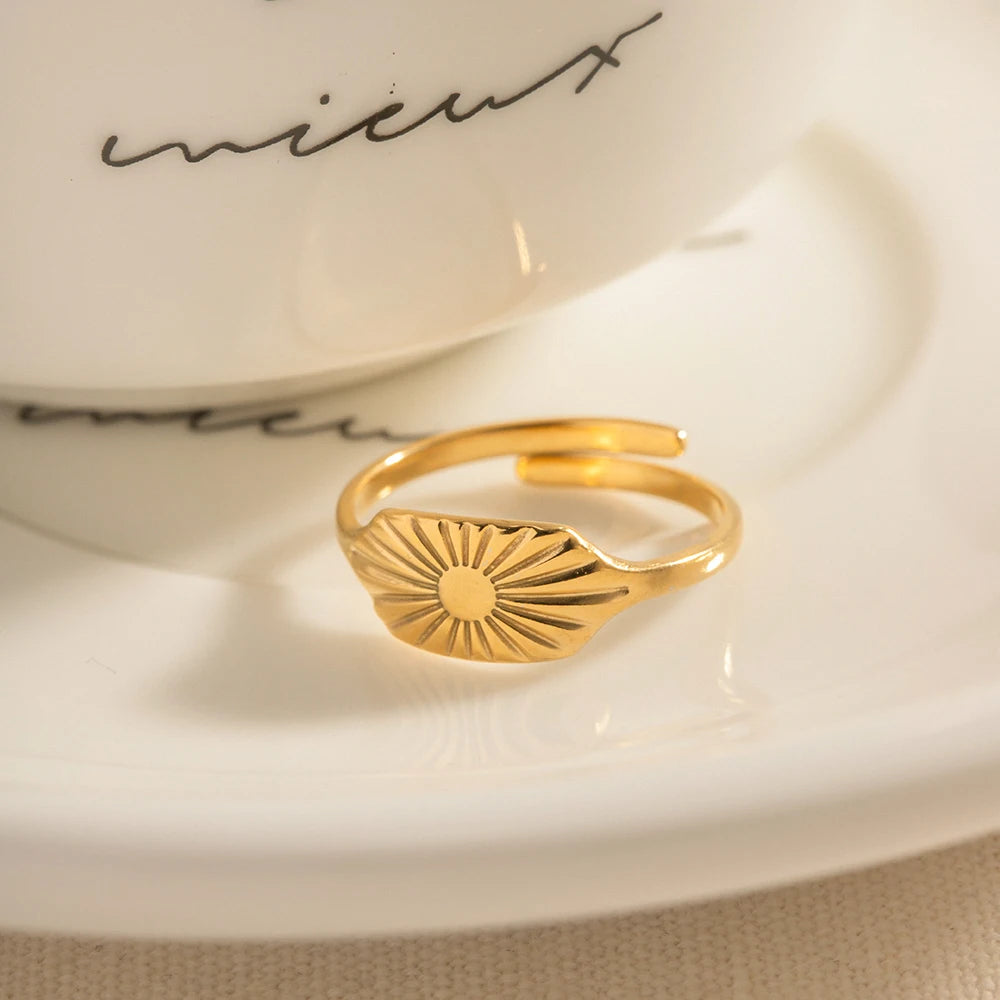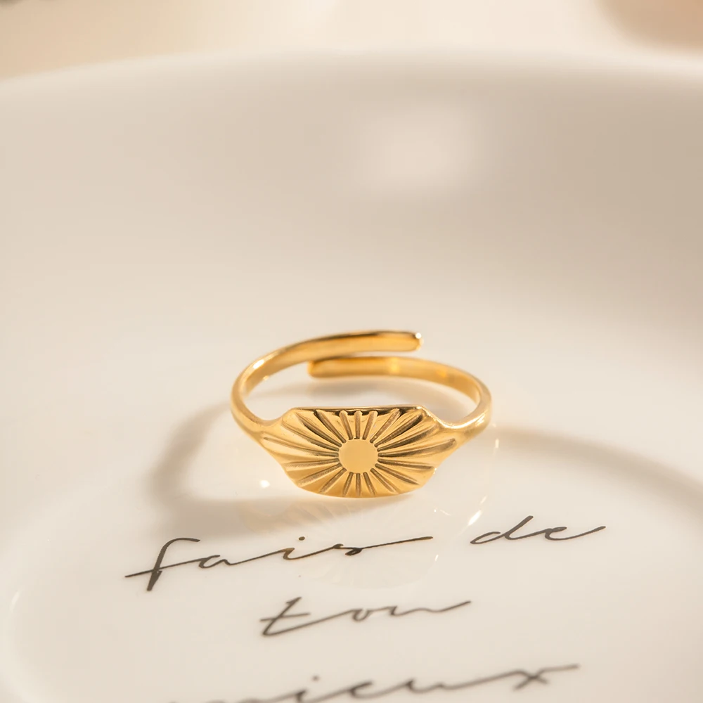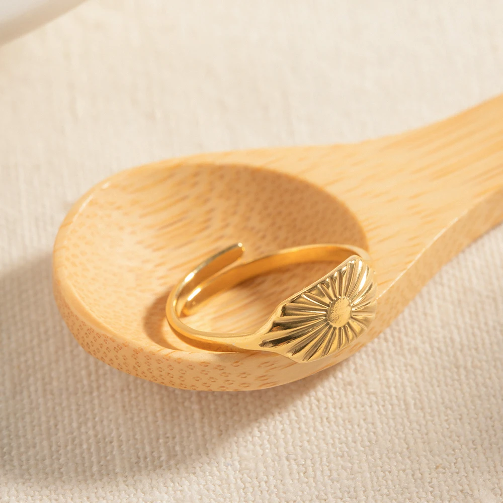 Anel Aberto com Design de Placa Quadrada Criativa Vintage com Flor para Mulheres Senhoras Aço Inoxidável Ajustável à Prova d'Água Presente de Joalheria