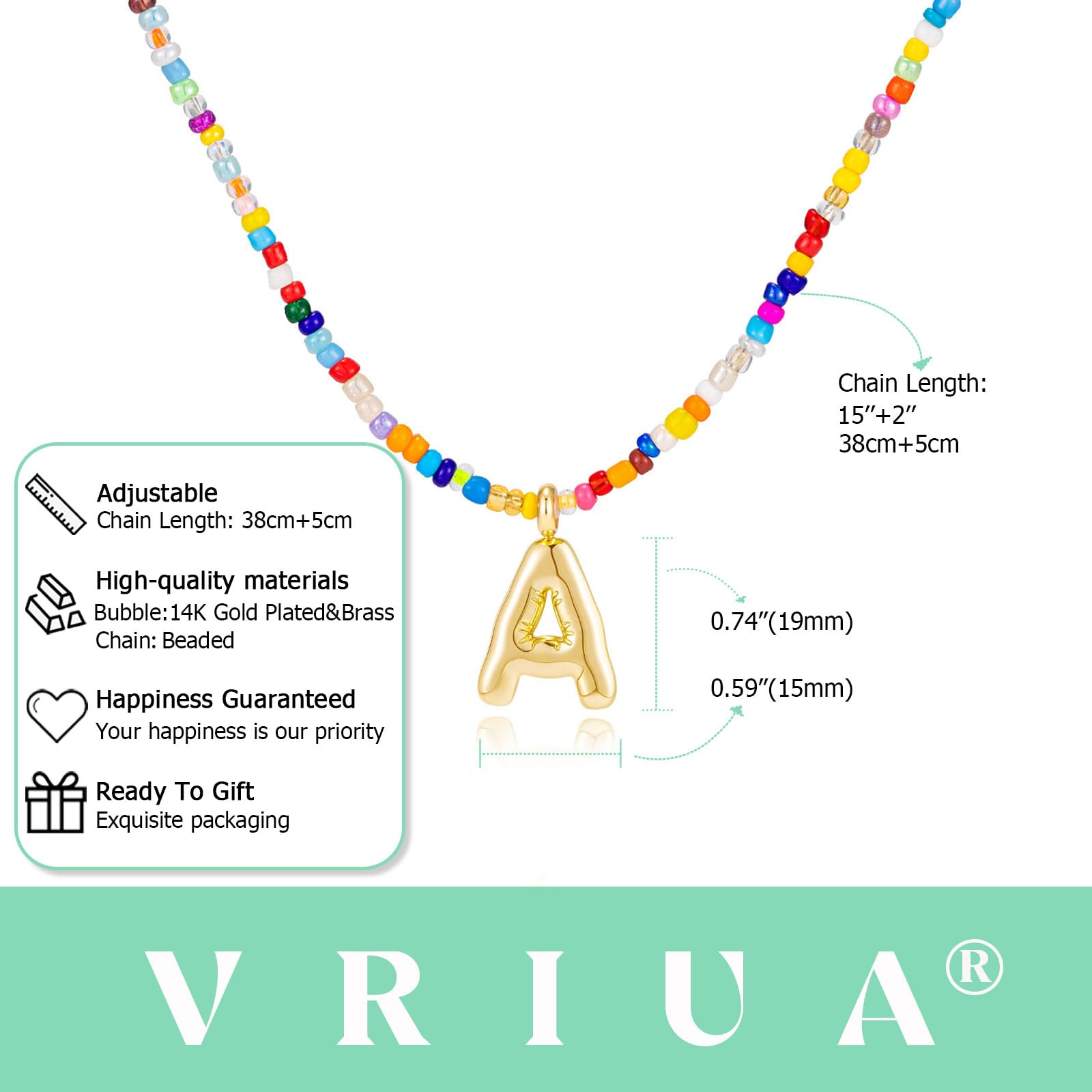 VRIUA Colorful Initial Necklaces for Women – Bubble Letter A Necklace Handmade Beaded Necklace Dainty Summer Beach Boho Necklaces for Women Cute Trendy Jewelry Choker Necklace