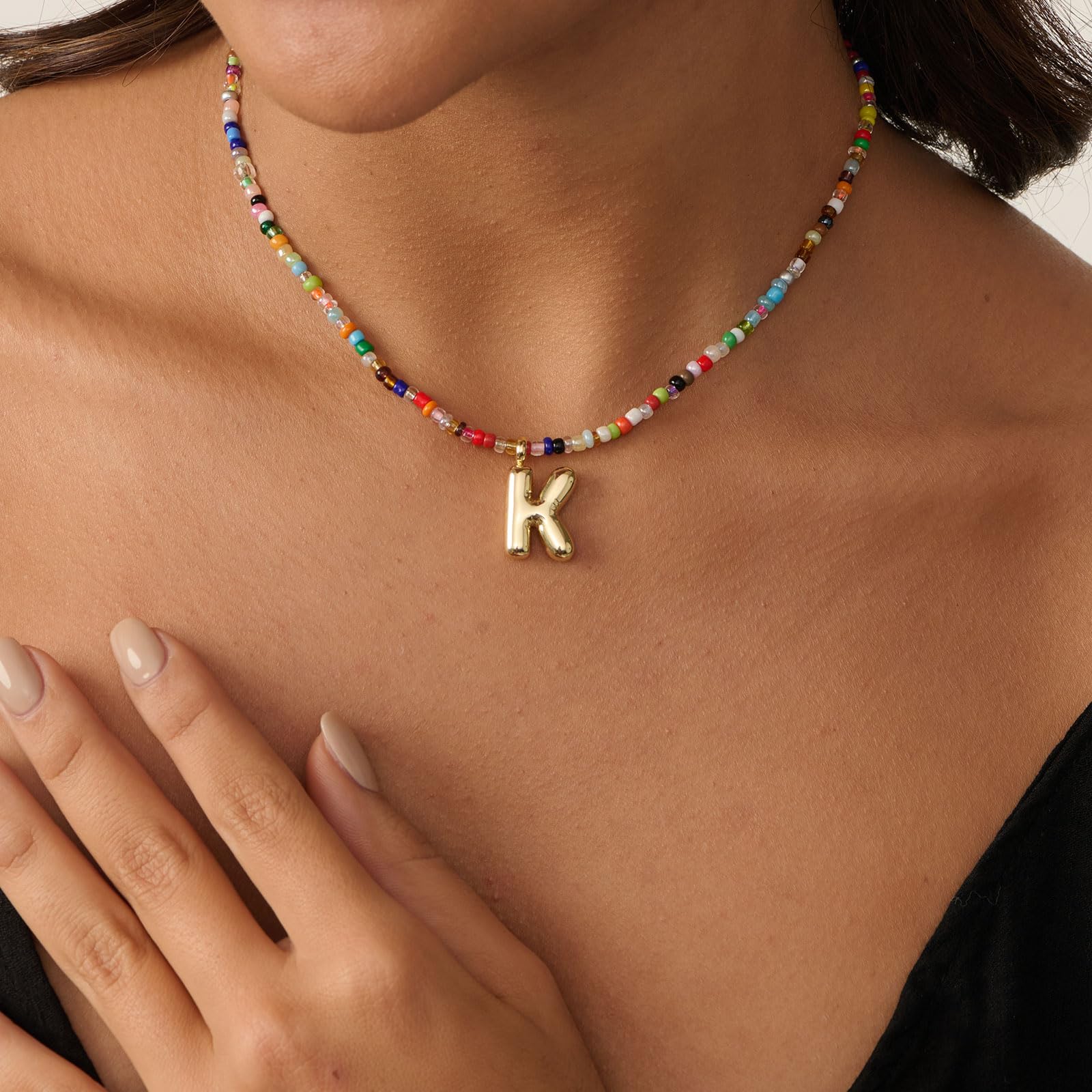 - Intricate Detailing: Featuring an array of colorful beads paired with a unique bubble letter pendant, this necklace brings a lively and cheerful vibe to any outfit, making it a standout piece in your jewelry collection.