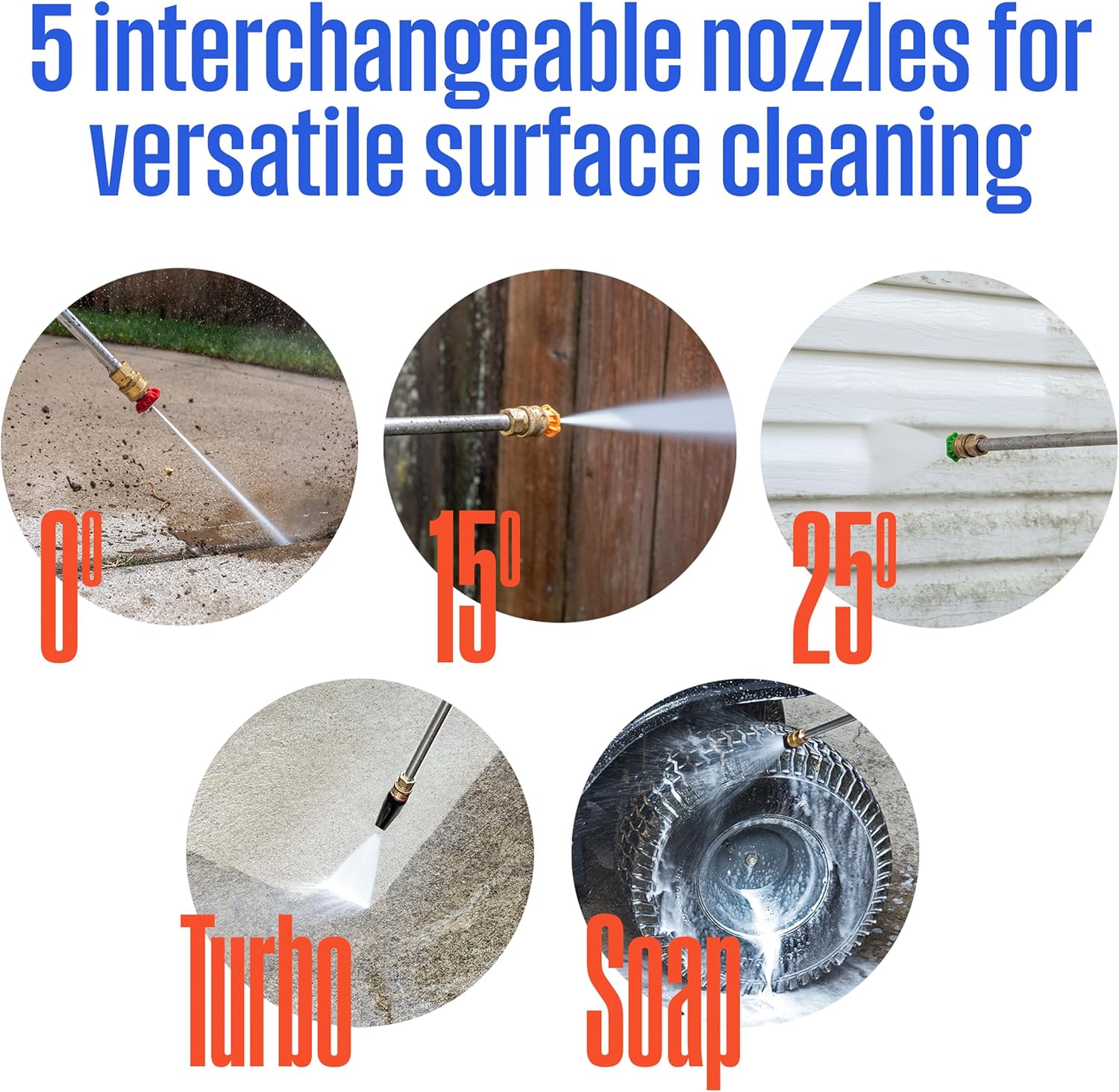 - 2500 max PSI (at initial discharge) and 2000 rated PSI of deep-cleaning water pressure; Up to 1.76 GPM (without nozzle at minimum pressure) and 1.2 rated GPM of water flow; Pro-style steel extendable 17.5” wand with quick-connect nozzles (0°, 15°, 25°, turbo and soap applicator)