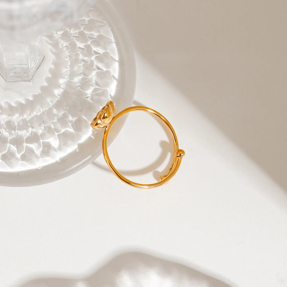 Zora Anel Aberto Ajustável Estilo Feminino de Luxo Leve de Aço Inoxidável Banhado a Ouro 18K - Doce Camélia Francesa