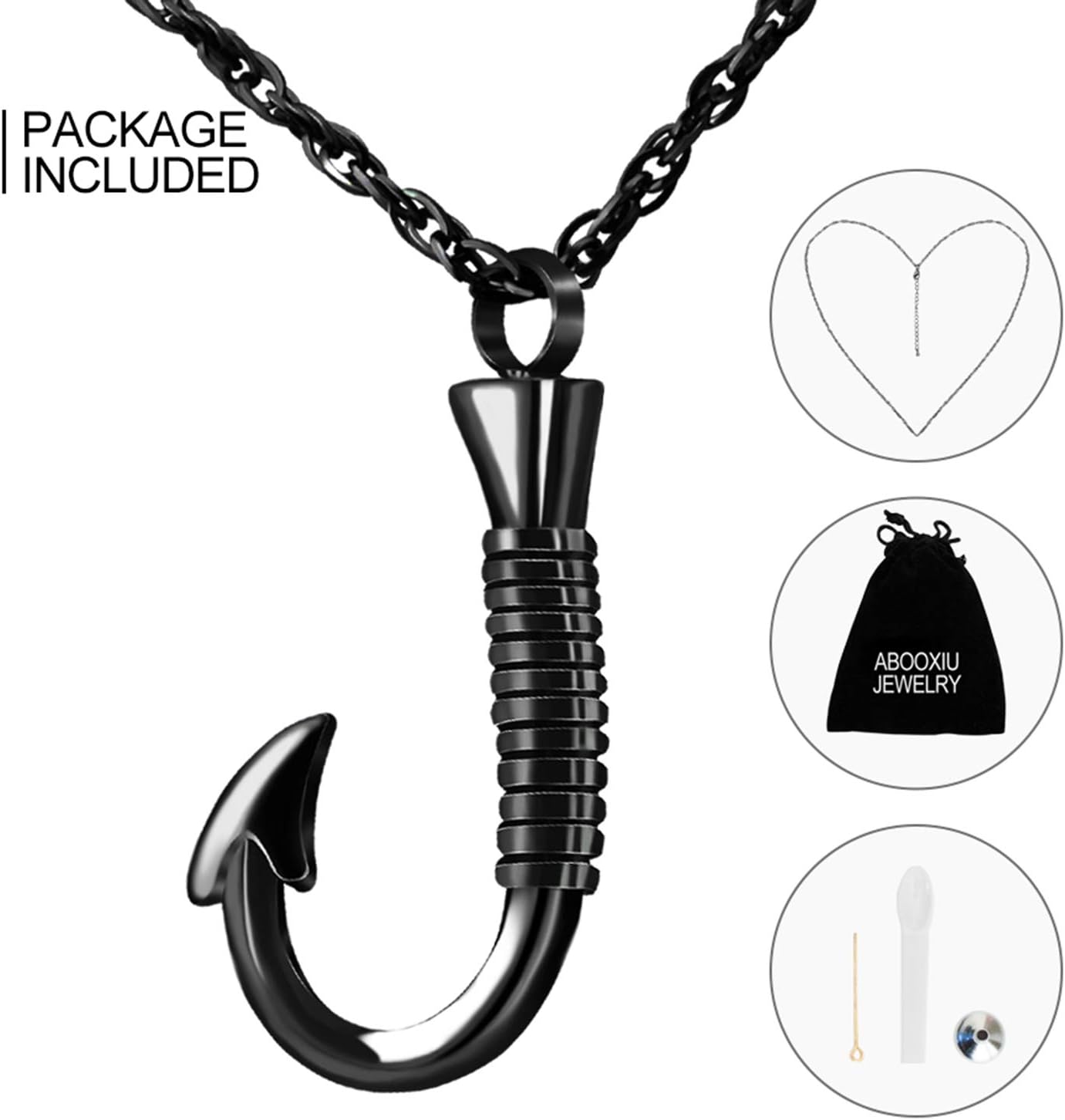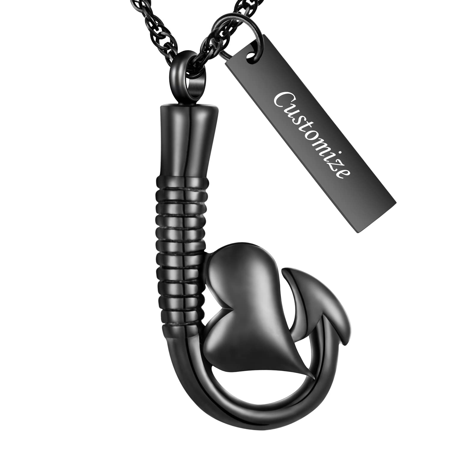 abooxiu Fishing Hook Urn Necklace for Ashes Fish Hook Stainless Steel Cremation Jewelry Memorial Pendant Keepsake for Men