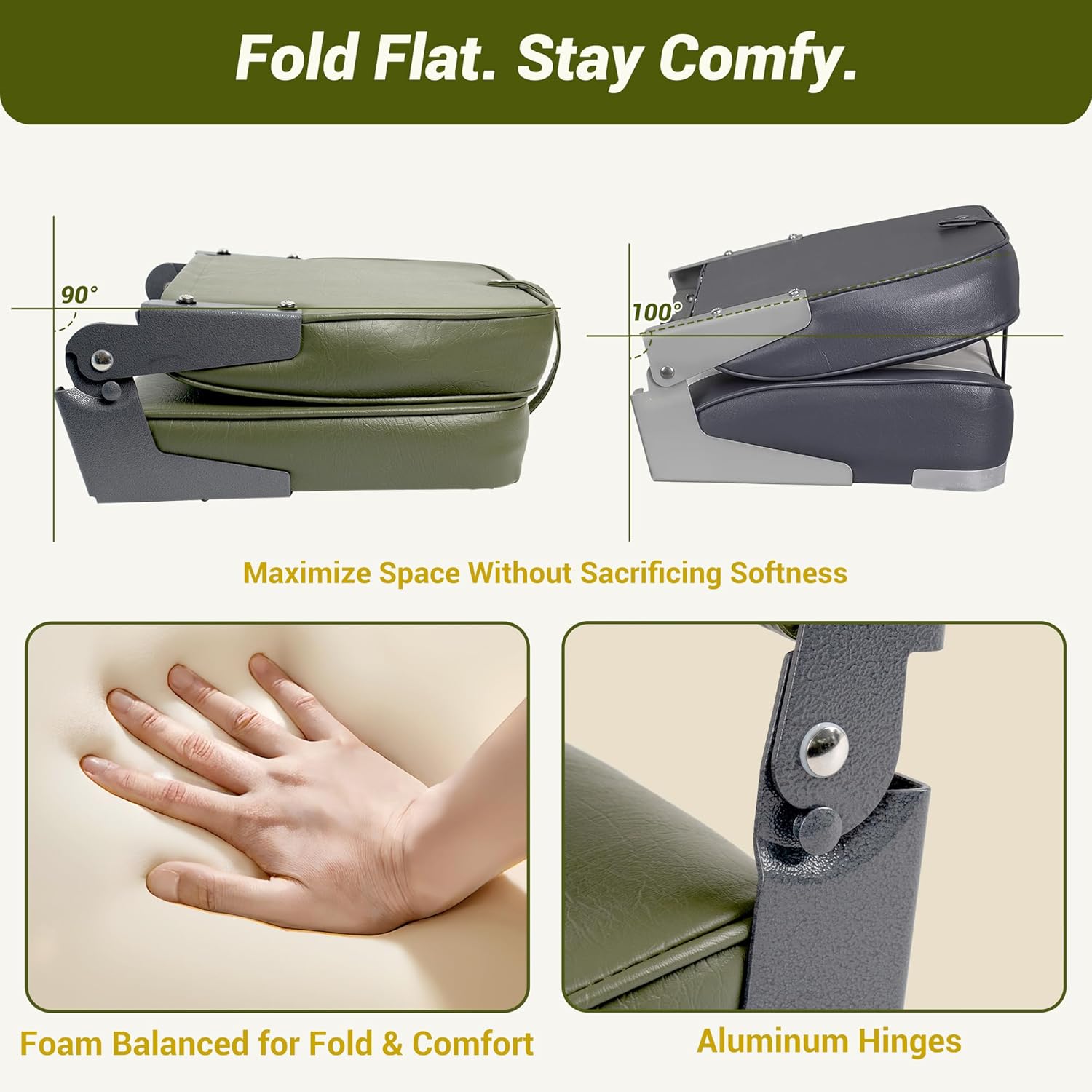 - Dual Set for Easy Boat Upgrades (2-Pack):Included 2 folding seats feature rust-resistant hinges for compact storage, perfect for outfitting boats, kayaks, or RVs. Ideal for fishing, camping, and on-the-go adventures.