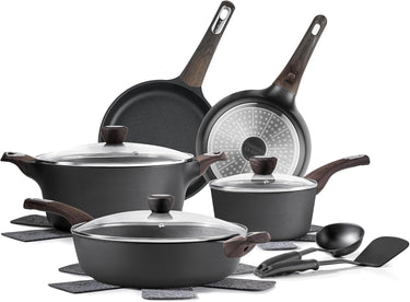 Наборы керамической посуды SENSARTE, набор кастрюль и сковородок с антипригарным покрытием, 14 предметов для индукционной плиты, нетоксичный, здоровый кухонный набор для готовки, с набором сковородок, без PFAS, PTFE, PFOA, PFOS