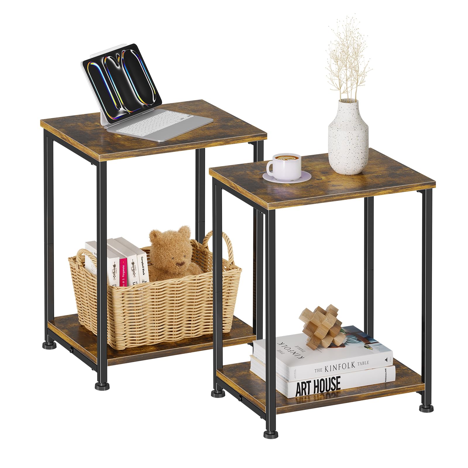 - Adjustable Plastic Feet: With 4 height adjustable plastic feet, the side table can be used on uneven floors or carpets, increasing the stability of the side table, the plastic material prevents the floor from being scratched.