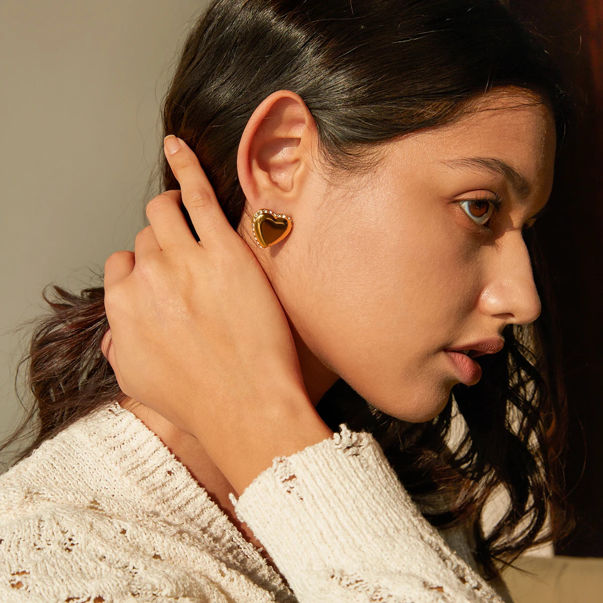 Серьги из нержавеющей стали с позолотой 18 карат, минималистичные, в форме сердца любви, инкрустированные стразами, водонепроницаемые, женственные, шикарные, для гала, стильные украшения
