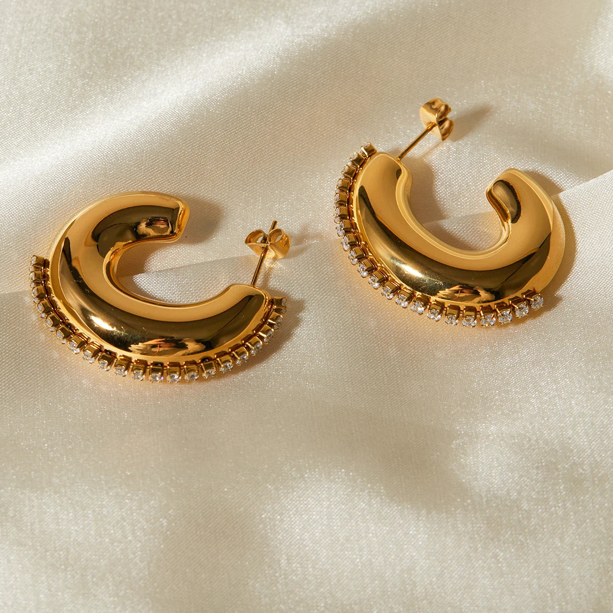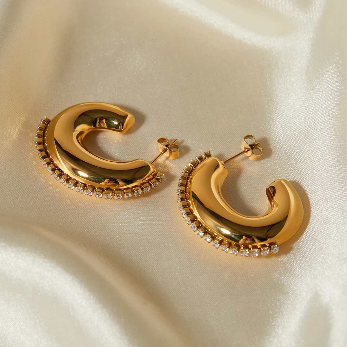 Серьги из нержавеющей стали, легкие, уютные, с позолотой 18 карат, уникальной С-образной формы, с инкрустацией стразами, не ржавеющие, женские, бижутерия, подарок для гала