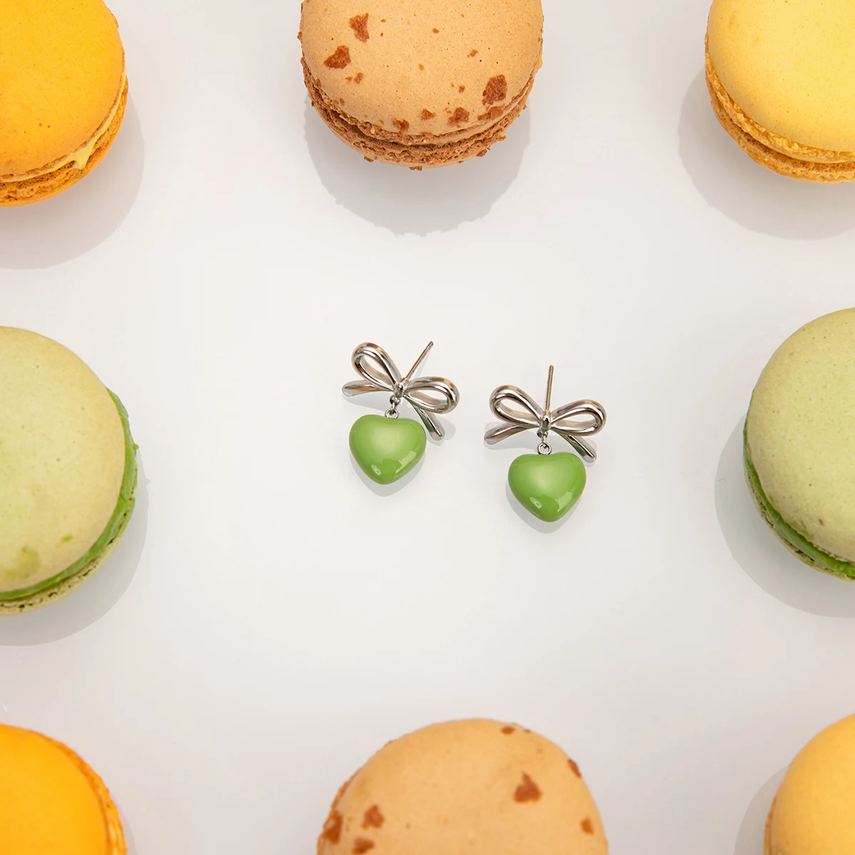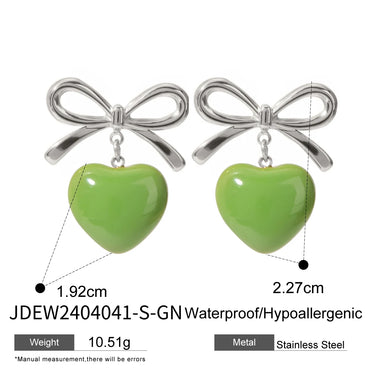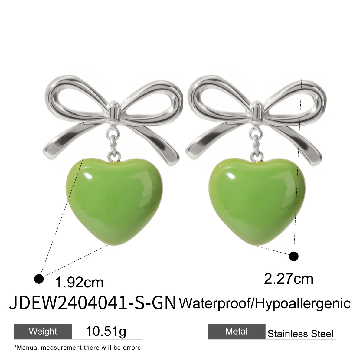 Серьги из нержавеющей стали стального цвета с бантиком, подвеской в виде зеленого сердца любви, капающим маслом, предотвращающие аллергию, романтичные повседневные украшения бижутерия