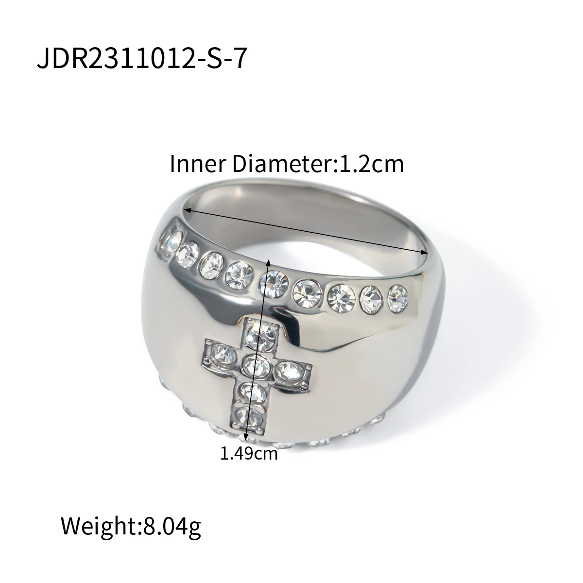 Стильное кольцо с крестом из нержавеющей стали с инкрустацией стразами, покрытое 18K PVD, пухлое, яркое, гладкое, устойчивое к ржавчине, очаровательное украшение