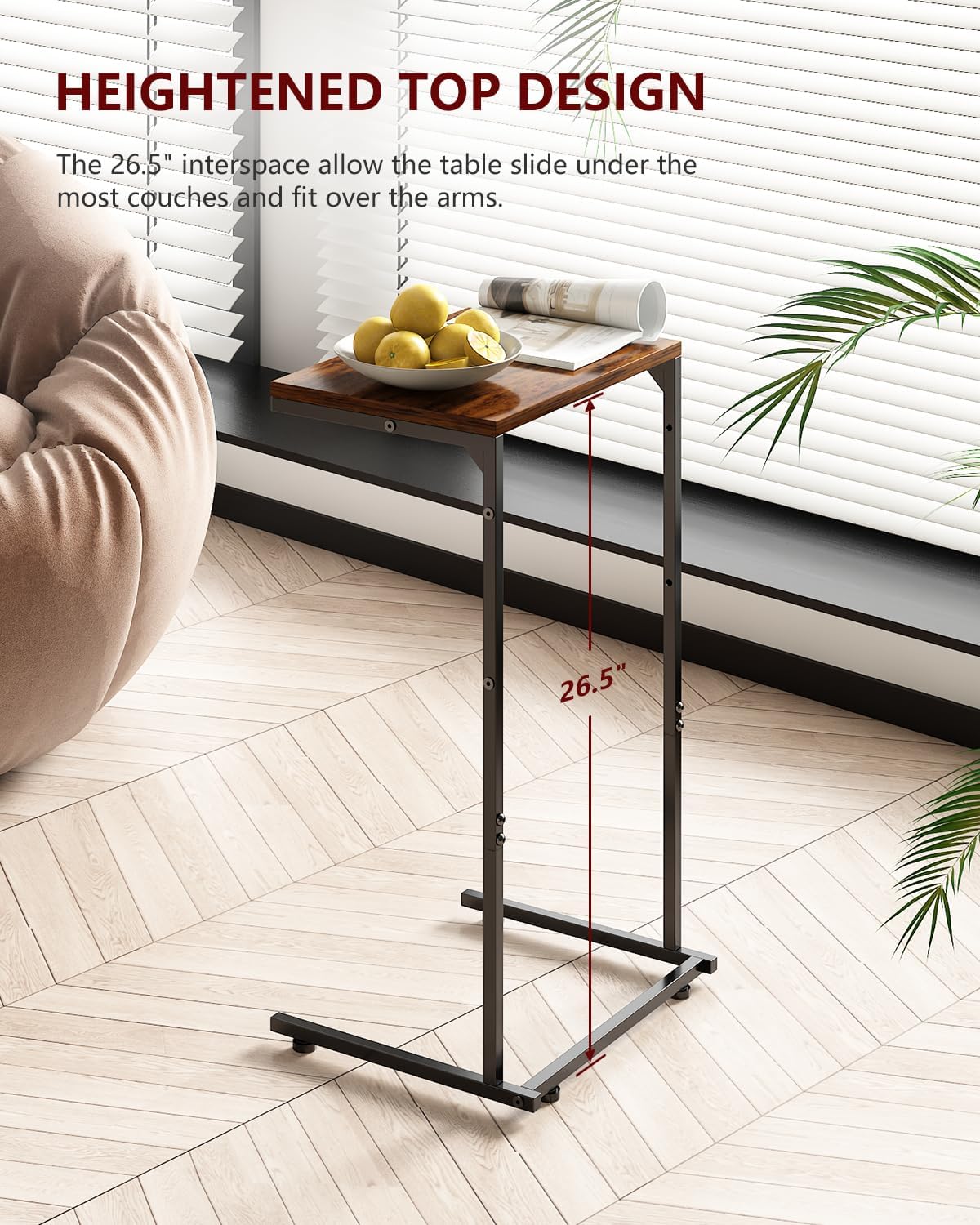 - 【Easy to Assemble & Move】Simple product construction, numbered parts and easy-to-follow instructions allow you to effortlessly assemble this sofa side table within 15 minutes; The lightweight design allow the side tray table for sofa to be moved around
