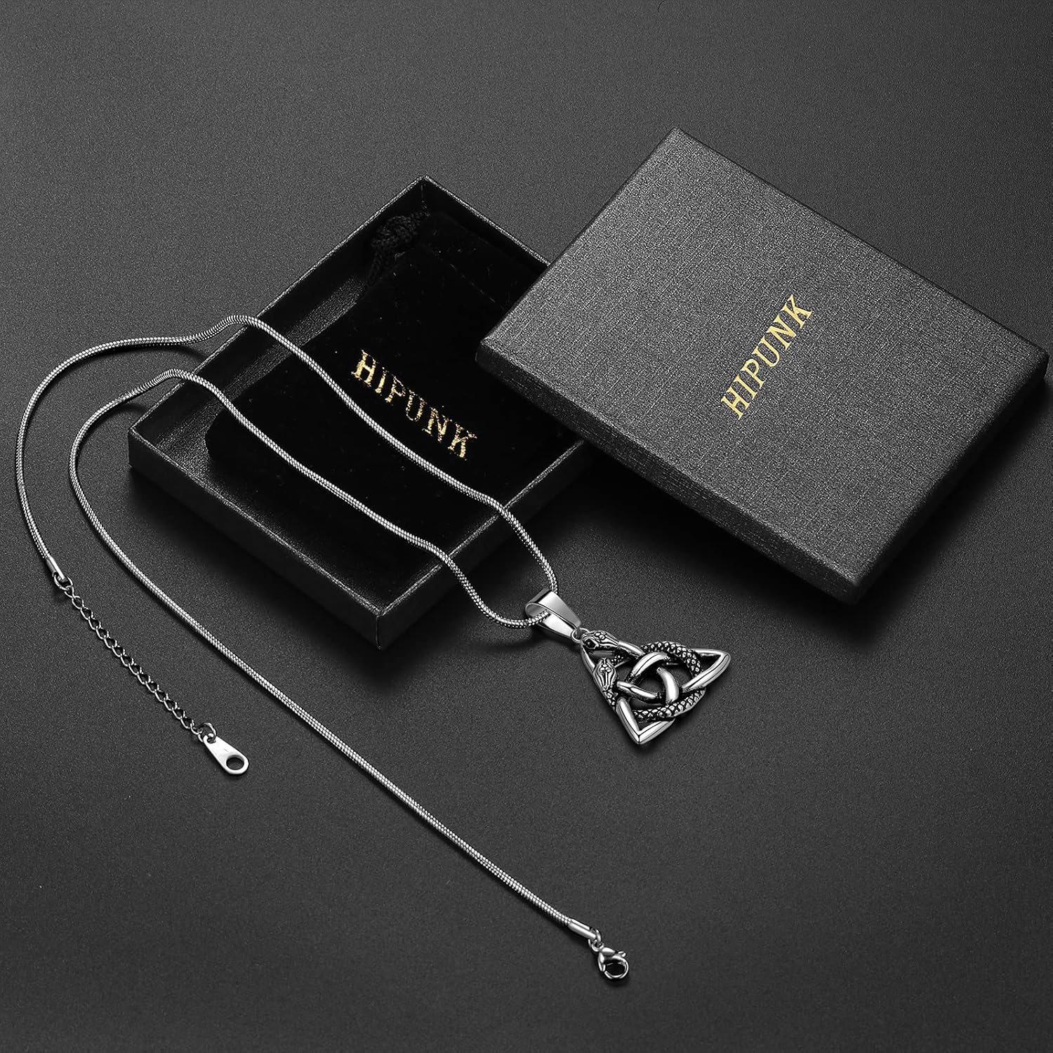 Celtic Knot Necklace Viking Pendant - Celtic Norse Triple Odin Horns Crescent Moon of Oden Horn Necklace Mens 316L Stainless Steel Triskelion Amulet Pewter Tribal Protection Viking Triskele Jewelry