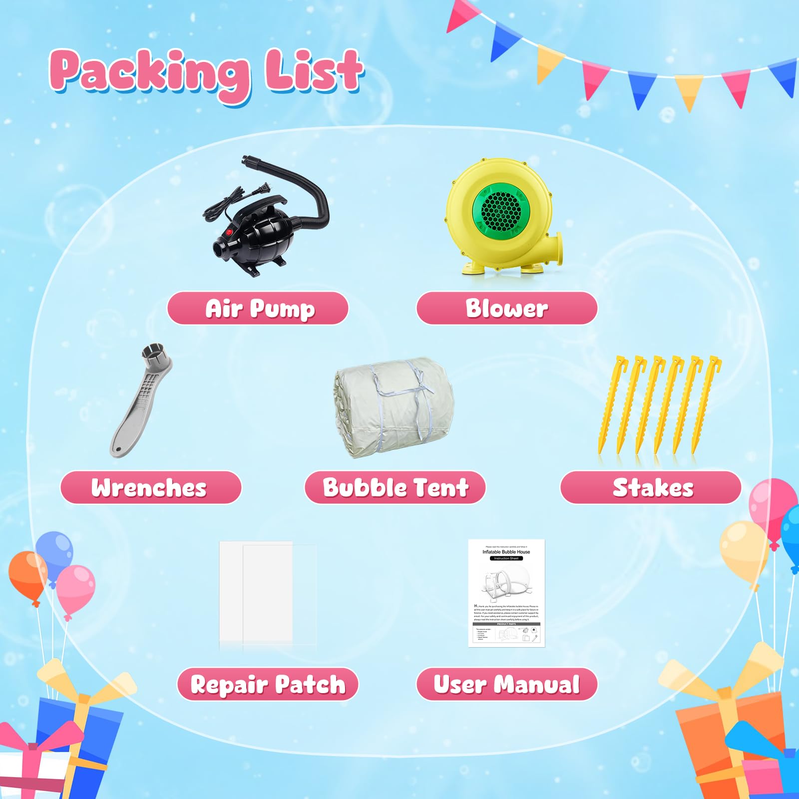- 【Stylish Design, Double the Fun】 The interconnected tunnels aren't just play zones—they create an eye-catching geometric shape,that transforms the bubble house into a magical backyard centerpiece.
