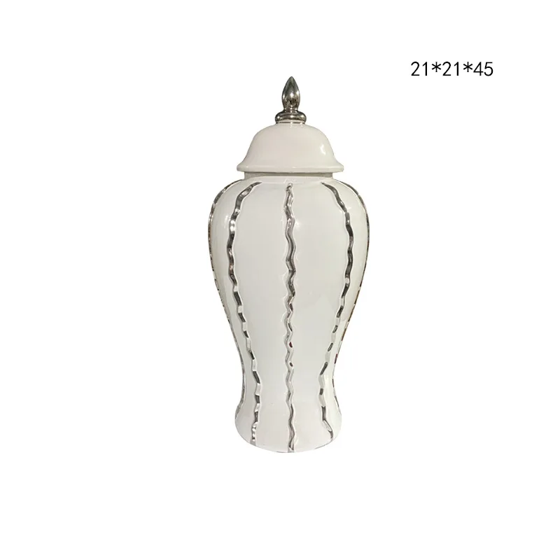 Ürün Başlığı: Seramik Genel Kavanoz Gümüş Dalga Kenar Zencefil Kavanozu Çiçek Vazo Porselen Depolama Tankı Ev Dekorasyonu Retro Alt