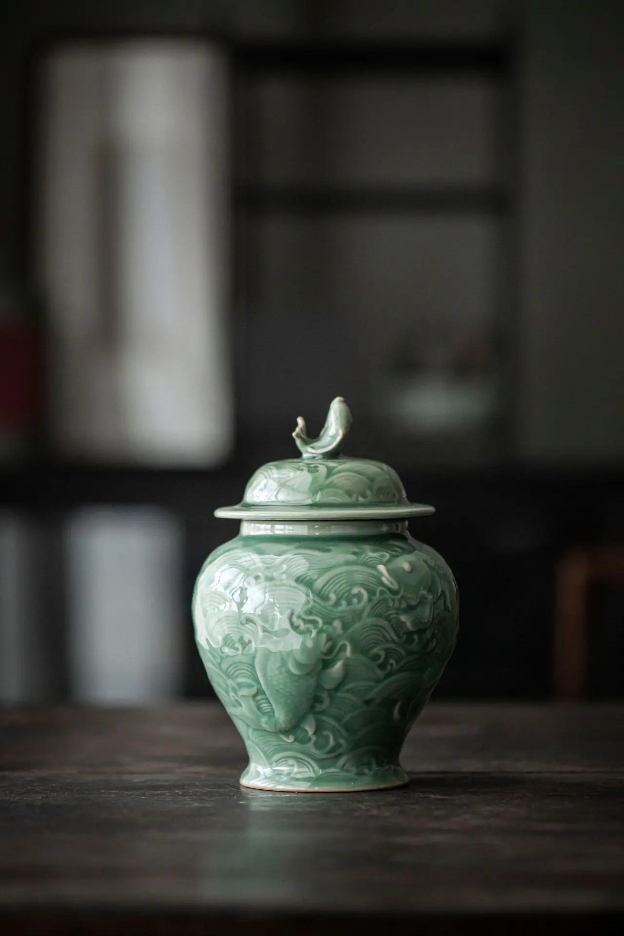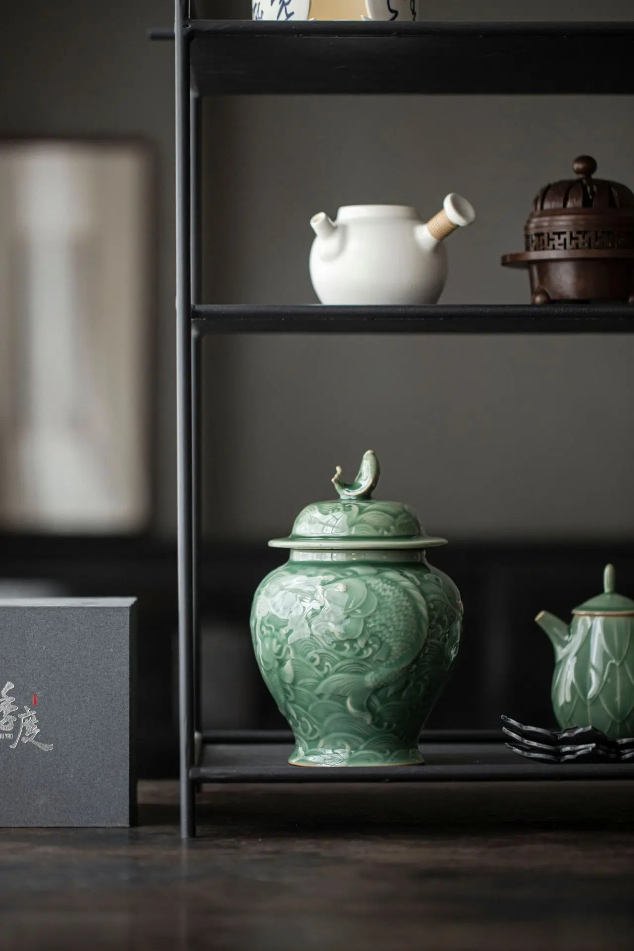 Ürün Başlığı: Seramik Çaydanlık Porselen Zencefil Kavanozu Genel Tank Celadon El Yapımı Balık Kabartma Depolama Tankı Ev Dekorasyonu