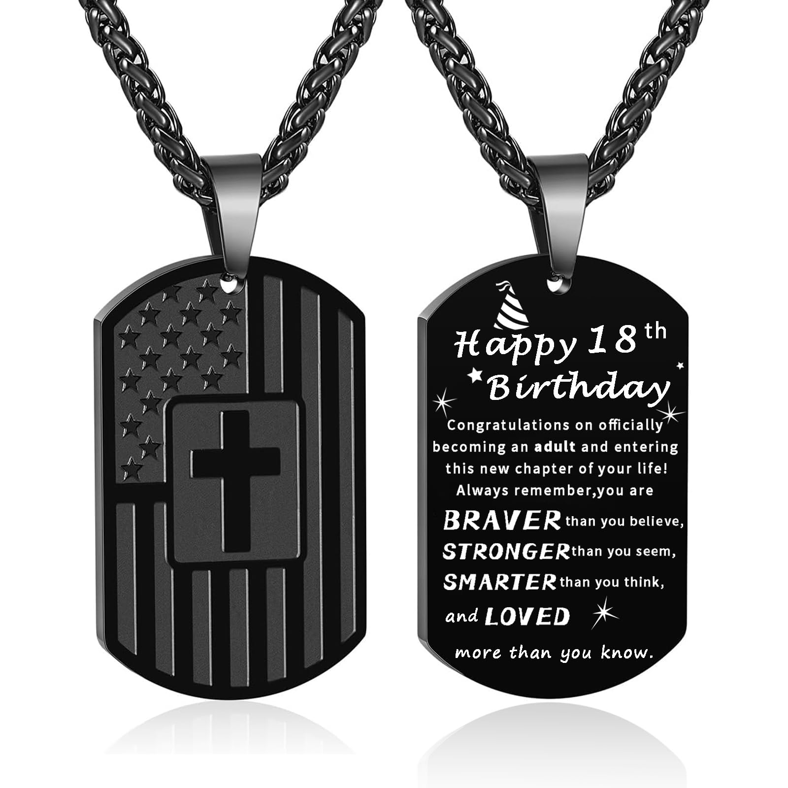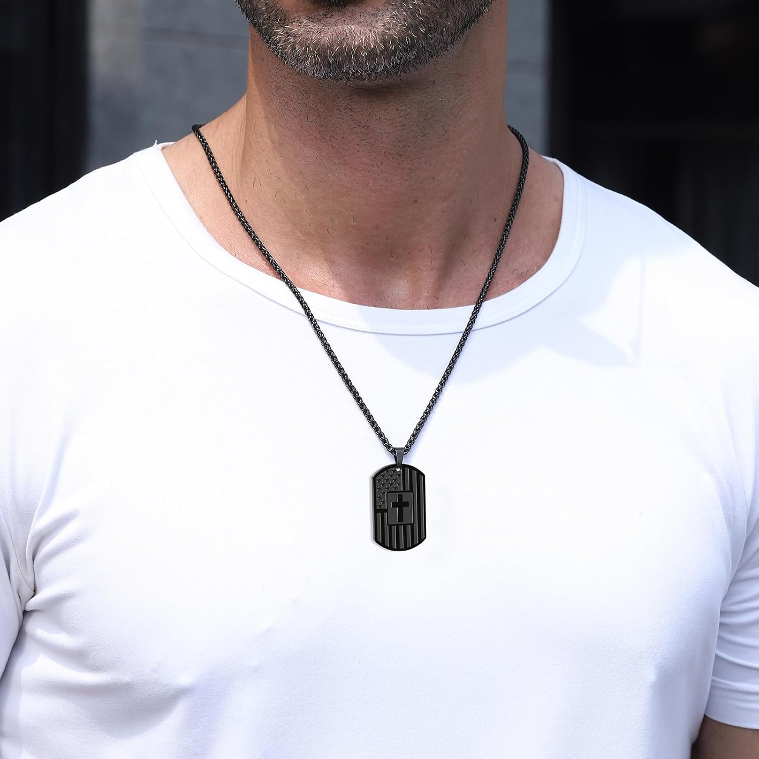 DuoDiner Graduation Gifts-American Dog Tag Necklace Bible Verse Pendant, First Communion Baptism Confirmation Religious Graduation Gifts for Him Boys Men Kids Teens Dad