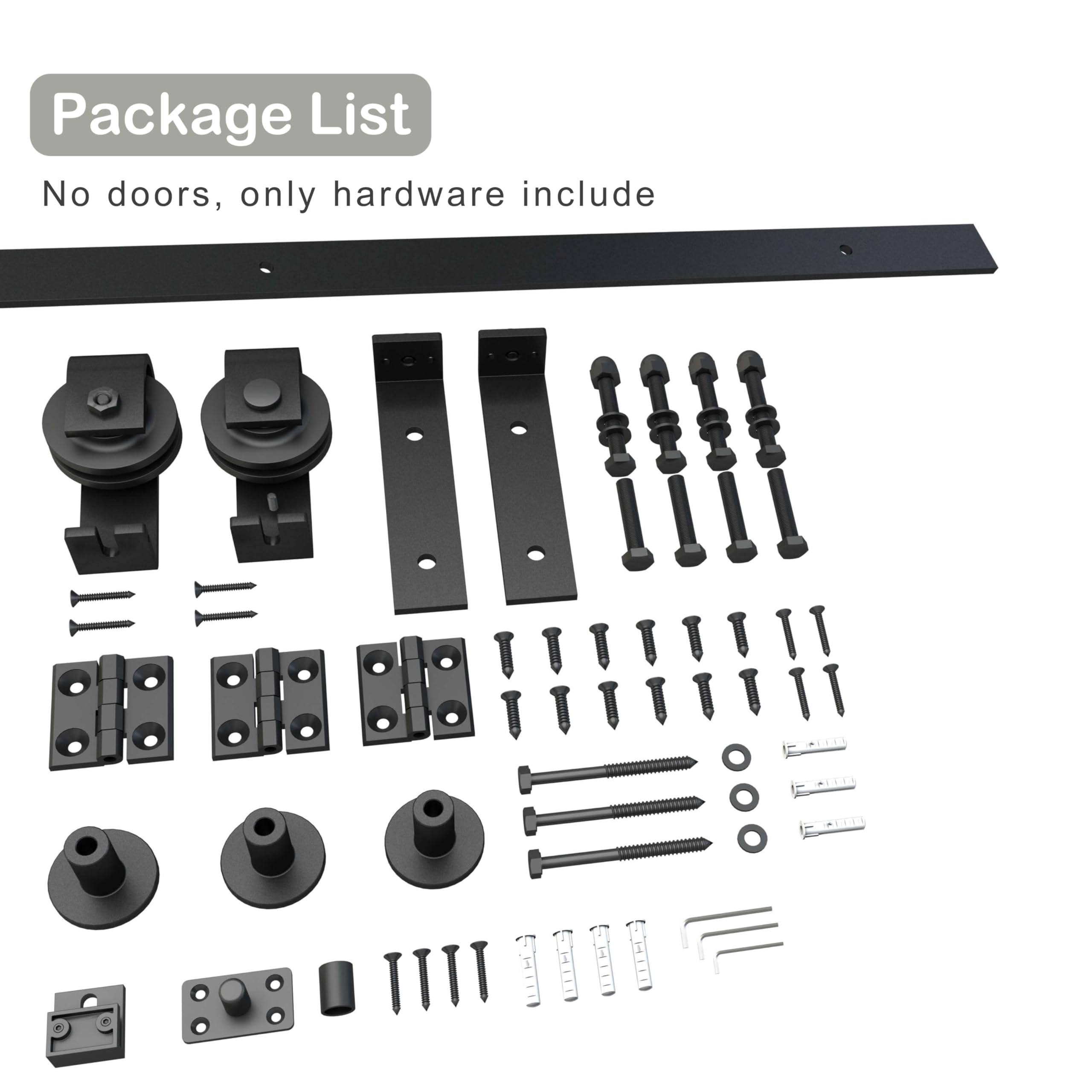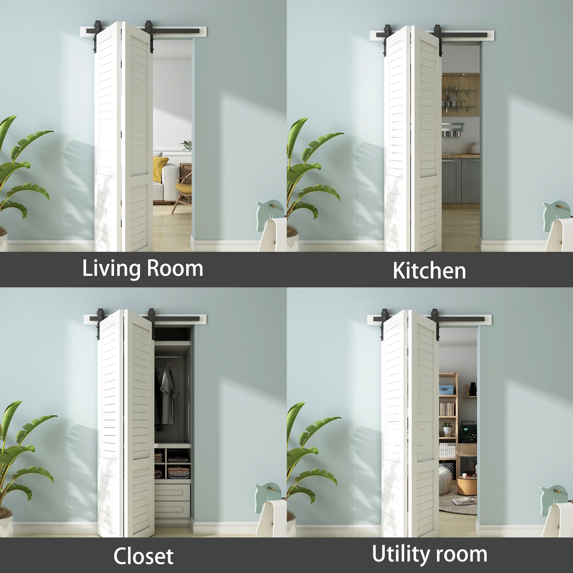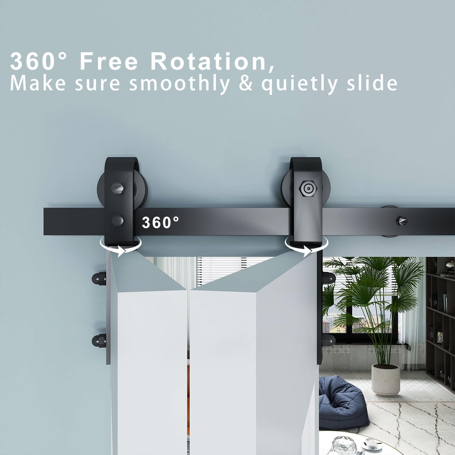 - SUPERIOR QUALITY: Sliding bifold barn door hardware is made of high-quality carbon steel with frosted black surface. All nylon wheels have been tested beyond 100,000 rolls, ensuring smooth and quiet sliding.
