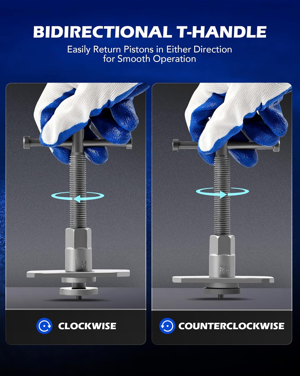 - Hassle-Free Use: Simply rotate the pistons back into their calipers to clear the pads. Embedded magnets in each thrust bolt assembly securely hold drive keys and adapters, while the right and left handed designs ensure versatile operation