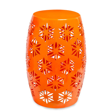 - Featuring heavy-duty drum design, metal lace-cut accent table is a unique element for your patio, garden or backyard, ideal when combined with a chair to create a cozy corner.