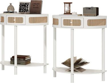 Wnutrees Rattan Yarım Ay Konsol Masası, Çekmeceli Modern Giriş Masası, Alt Depolama Raflı Boho Kanepe Masası, Koridor, Oturma Odası için Küçük Yarım Daire Masaları, Doğal